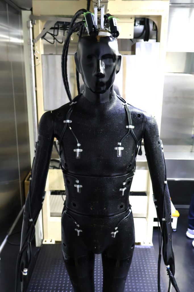 ・発汗マネキン「TOM®」Ⅲ 気体の水を吐出する等身大のサーマルマネキン。立位、仰臥位(仰向け)で温熱快適性を評価。